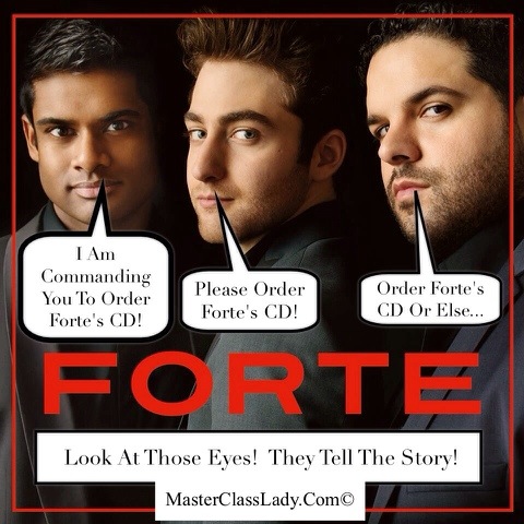 Hi Rosanne! Haven’t seen you over at the Forte Facebook fan page so I decided to come to the mountain! Looks like you have been busy. Love your article on the guys’ new album! It has been like Christmas the last 2 days with all of us receiving our pre-ordered albums from Amazon! The Forte album is simply STUNNING. I knew it would be good – but not THAT good! Wow. Gorgeous mixing too. So far my favorite track is still “Caruso” but a close 2nd is surprisingly “The Prayer” with Cami Bradley. The gang at the fan page all seem to like “Unchained Melody” and “Something” the most. It’s ALL good!