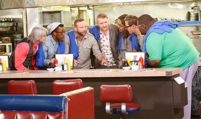 “There’s no ahi tuna, no sea bass, no filet, no lobster,” notes Gordon Ramsay. Instead, patrons will vote for either the Red Team or Blue Team based on their aptitude with fried chicken, club sandwiches, short stacks and eggs — with losing team members facing “an intense pressure test” involving “elegant and delicious three-layer red velvet cake” that will determine who gets the boot.