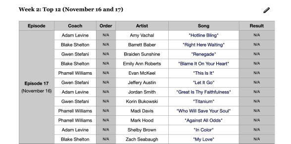 I agree with this assessment of the performances last night. Many song choices had me scratching my head. http://www.ydtalk.com/idolchatteryd/song-by-song-grades-for-the-top-12-on-the-voice-6/