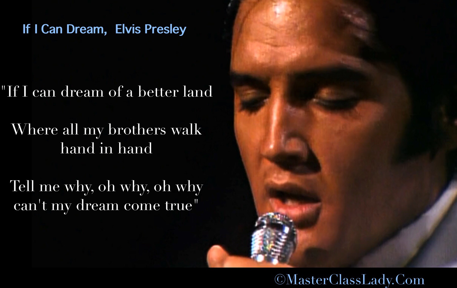 If ever there was a song and video that speaks to the current world situation, it has to be this powerful performance of”If I Can Dream” by The King himself, Elvis Presley. The message contained in this song rings loud and clear and strikes at the heart and soul of the uncertain times in which we live.